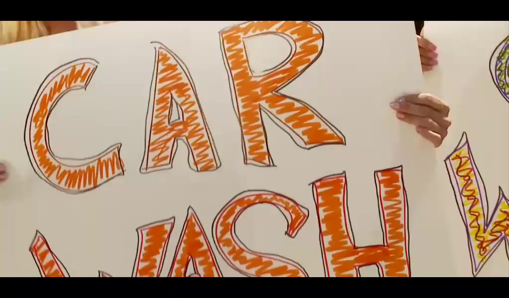 Group of friends get horny during car wash charity and fuck and suck in outdoor public parking