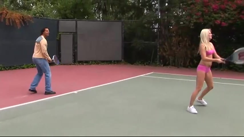 Two girls are beginners, so the guy decided better to fuck on the court than watch stupid game