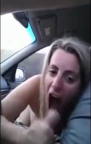 Description: Hot blonde doing a perfect blowjob while her lover is driving