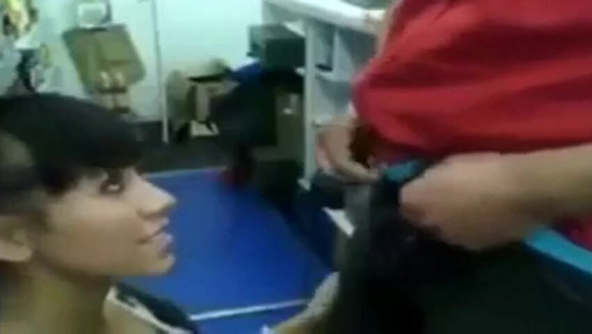 Spompinato dalla collega vengono interrotti da un cliente, ma poi ricominciano fino alla sborrata finale