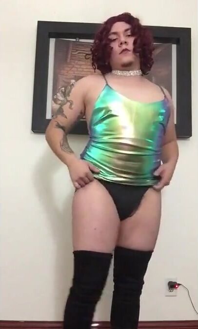 Crossdresser home alone