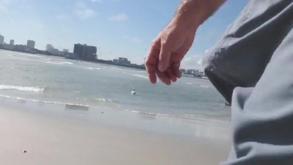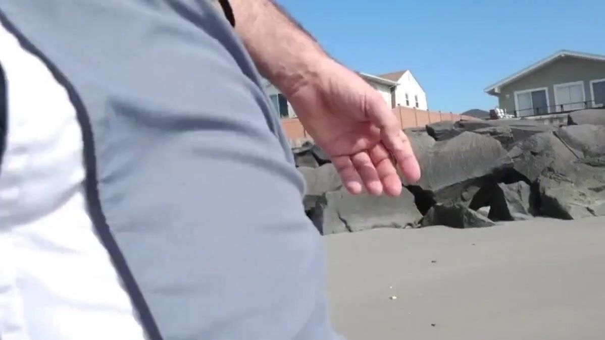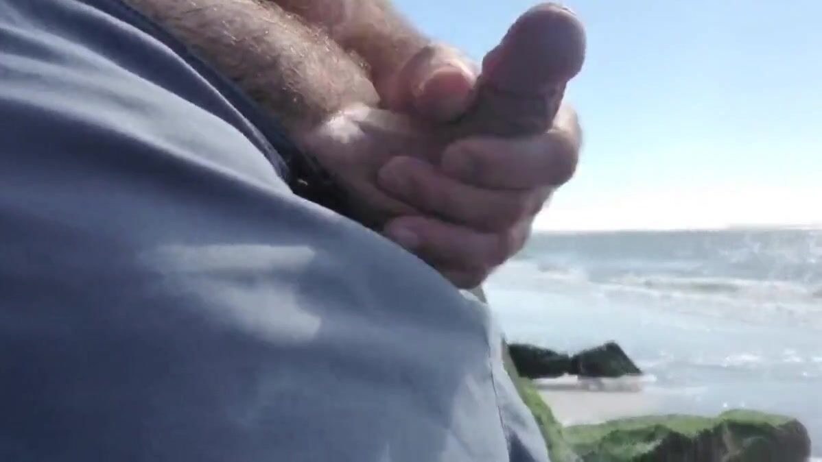 Jerking off on public beach-Big Cum Shot-Hairy Bear Video