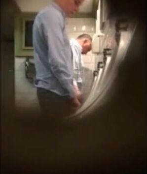 Guys in the urinals taking leak. Video