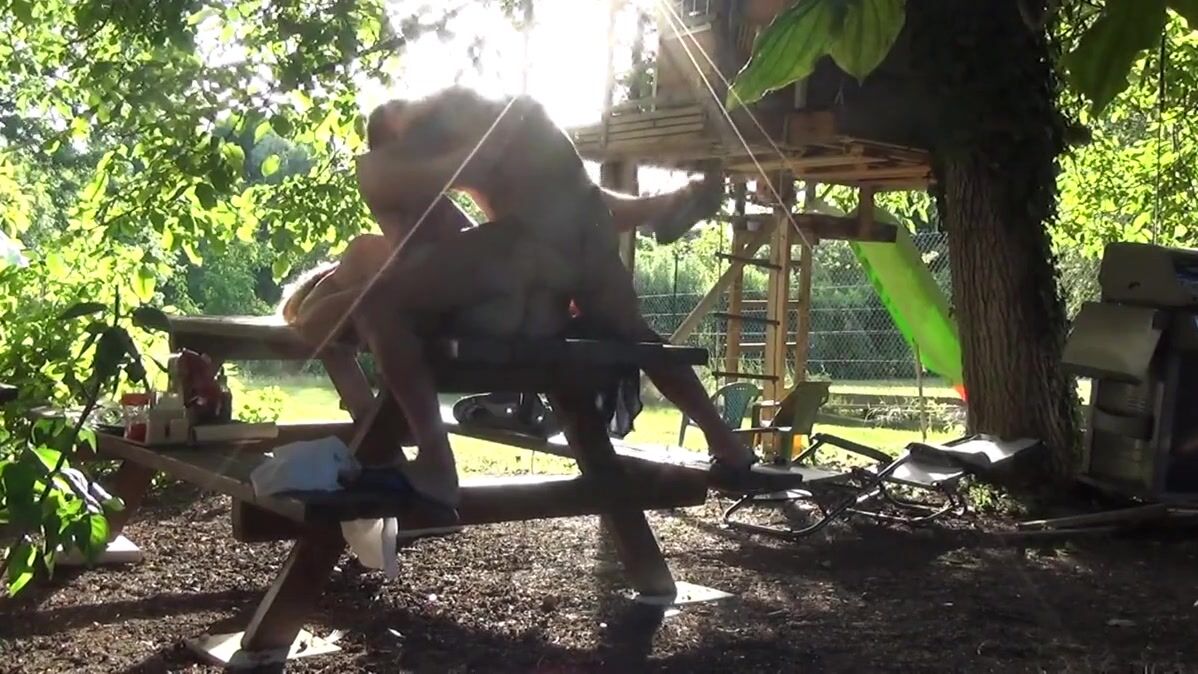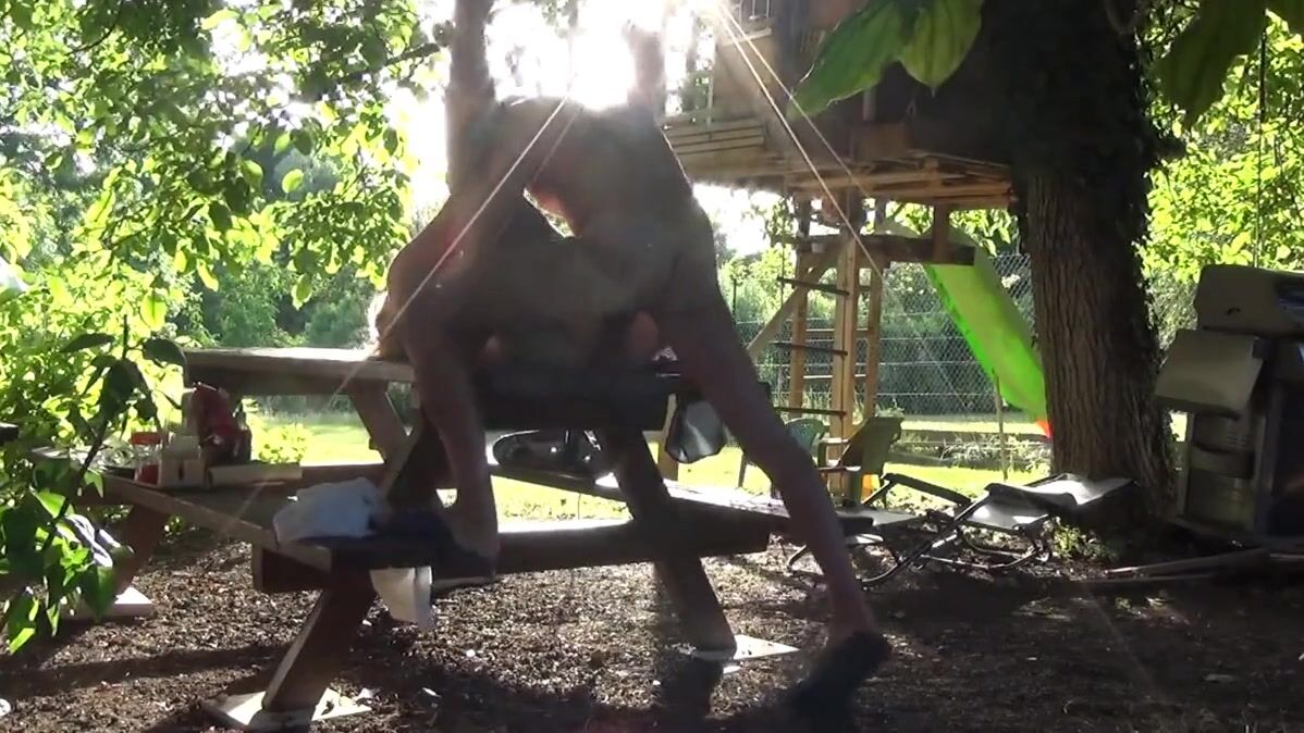 This bitch of Helene is made smash the bottom on the table of the garden in front of the neighbors, and that excites it that they masturbate by looking at it