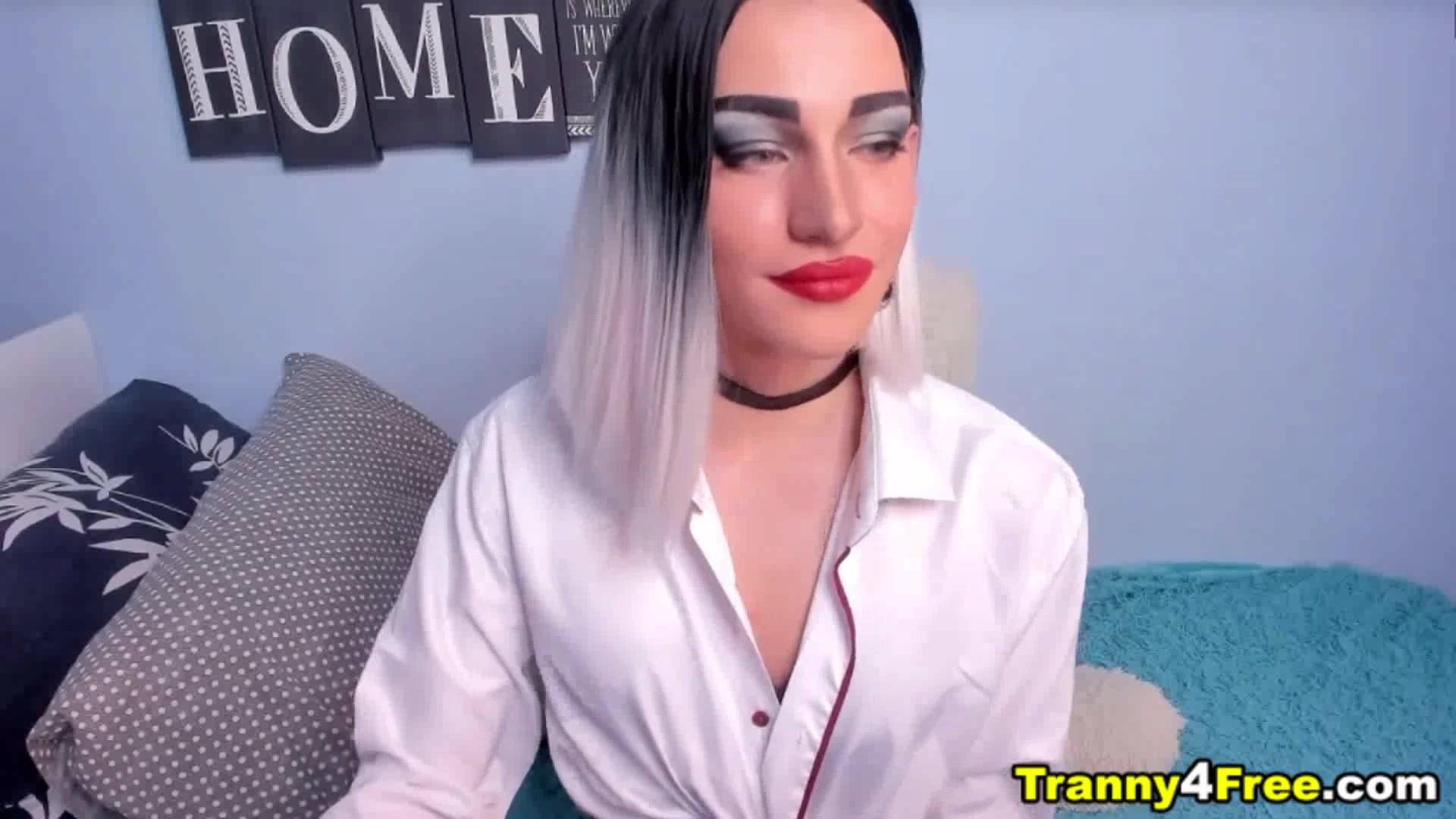 Description: She has her big cock hiding between her legs and when she release it its time for her to masturbate. Cute and sexy trans gender girl takes off and grab it firmly from her panty and strokes her dick while on live in a pornsite. The small breast trans gender girl grabs her big dick and makes it hard before taking off her panties. She jerks herself off and rubs and stroking her cock using her hands she kneeled in the couch giving a clear nice view of her cock and she continues to play with it. Enjoying her self while many people watching online.