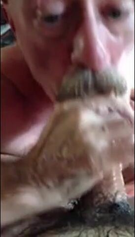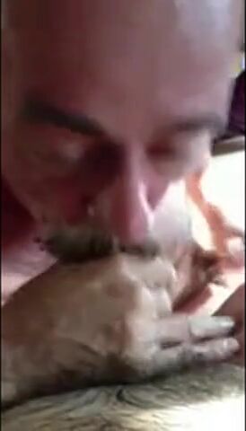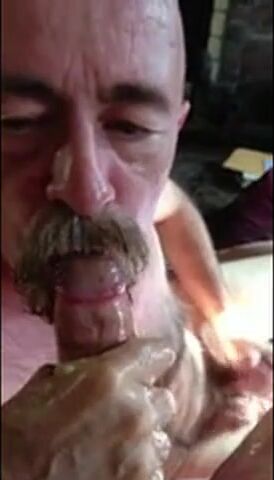 Description: An orally talented skinny goatee daddy shows off his fine oral skills on his hung buddy.