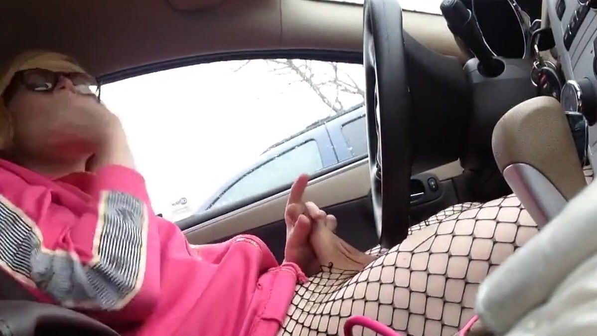 Cute Sissy in her car having some fun in a public parking lot.