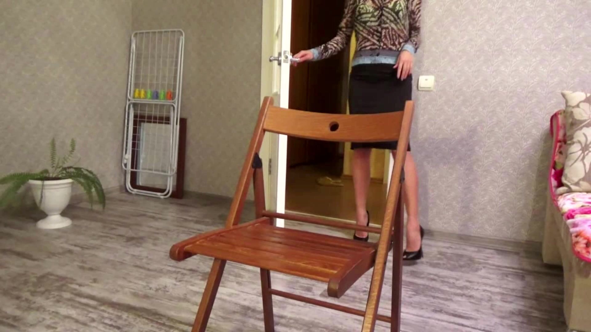 Bound brunette in chair gets fingered