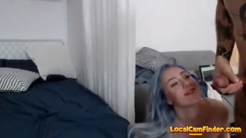 Blue haired cam girl sucks Video