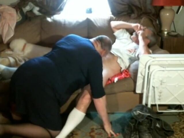 Crossdresser sucking mature buddies cock and swallows it all Video