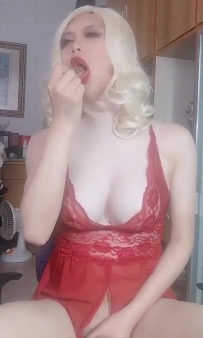 Sissy Maggie - cum with fake breast Video