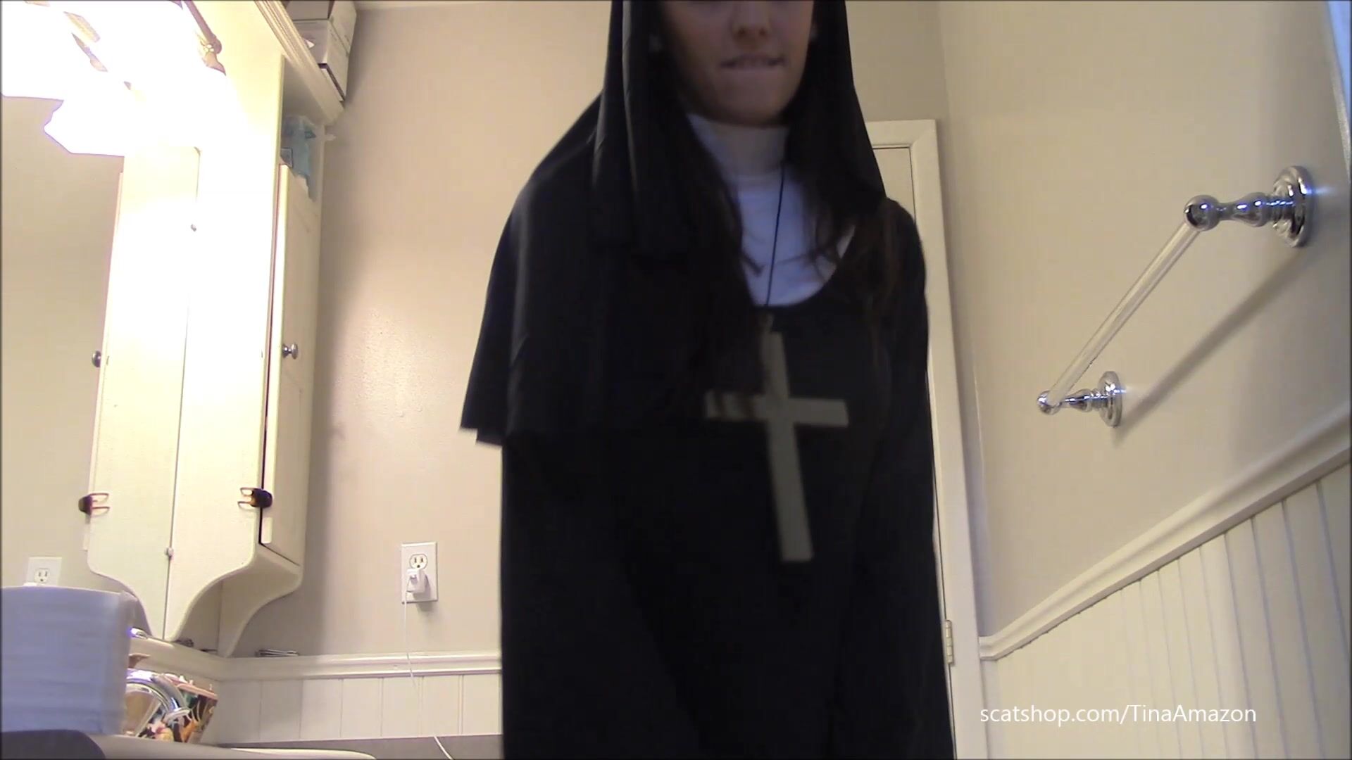 bizarropornos.com - Naughty Nun Shit Smear and Swallow Video