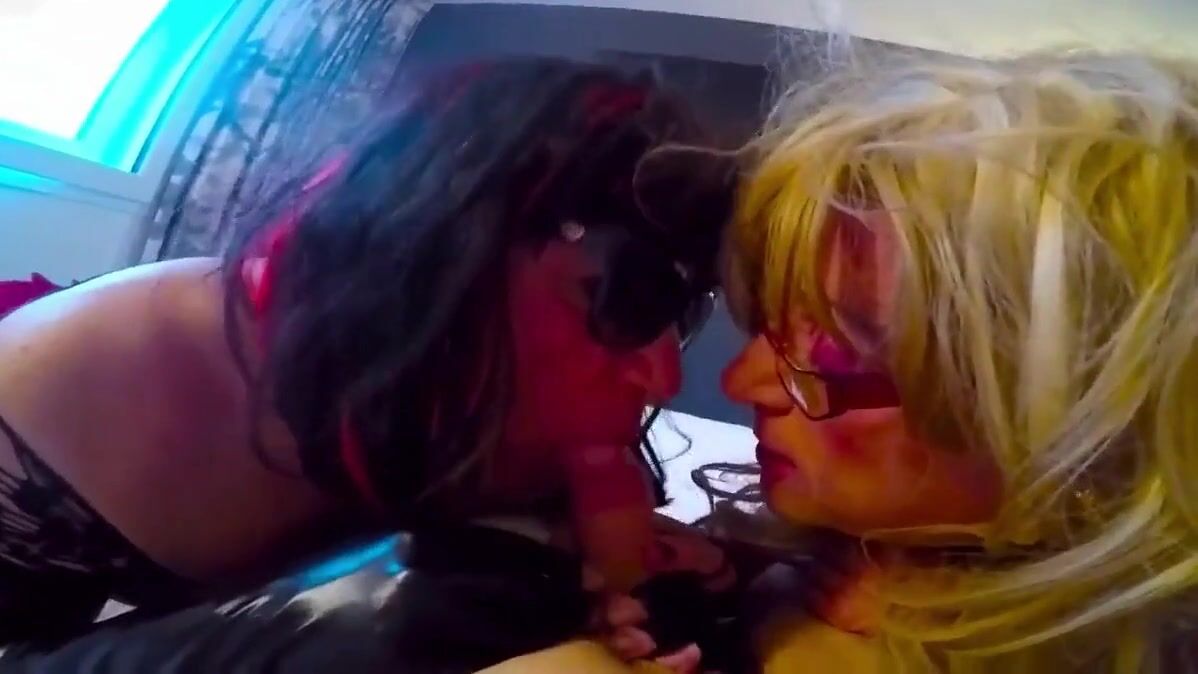 Deux travestis sucent une jolie bite