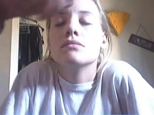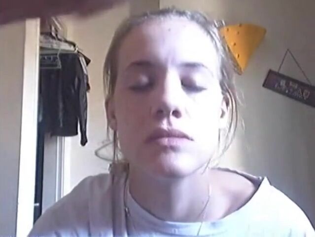 Petite Stepsister with glasses rides dildo