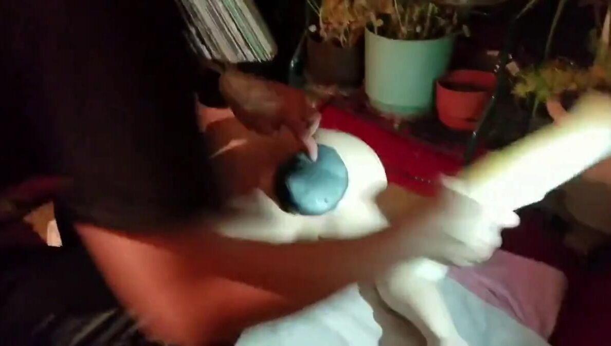 Horny Chick Sloppy Deepthroat With Huge Dildo