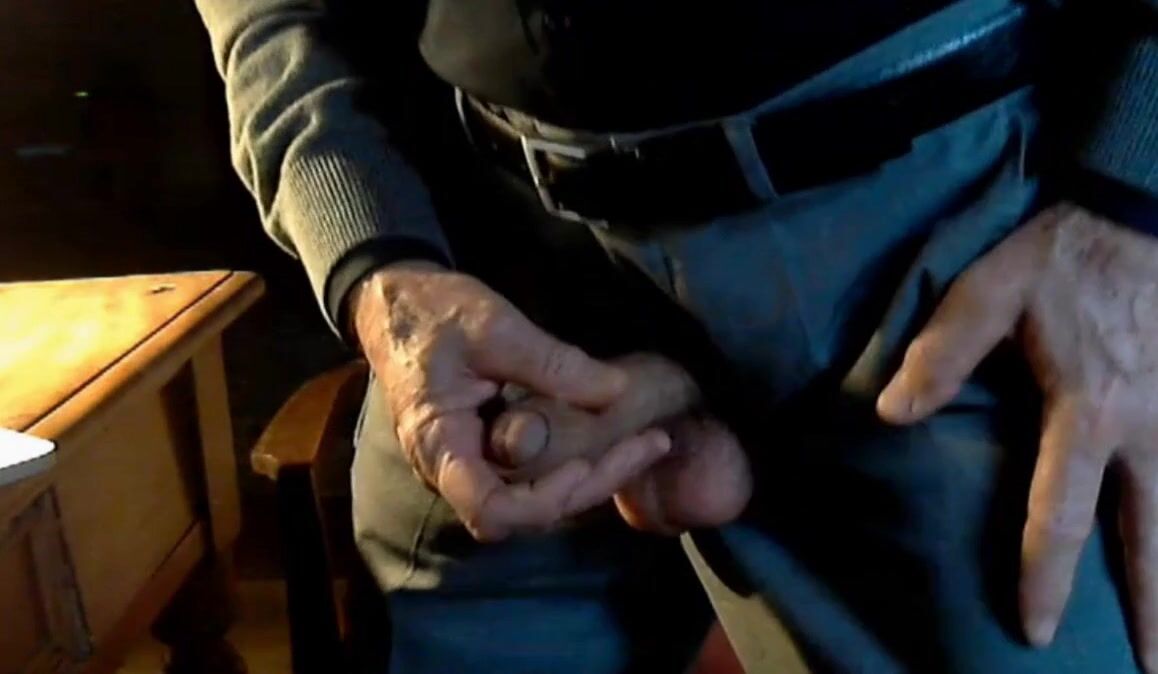 Description: Old grandpa on cam playing with his nice, thick, uncut cock