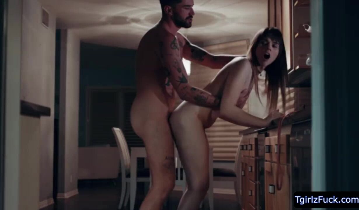 Slender ts stunner Kate Zoha gives handsome stud Chris Damned a playful tease show in preparation for an intimate session. The cock hungry shemale blows his enormous hard cock before she bends over and take from behind.