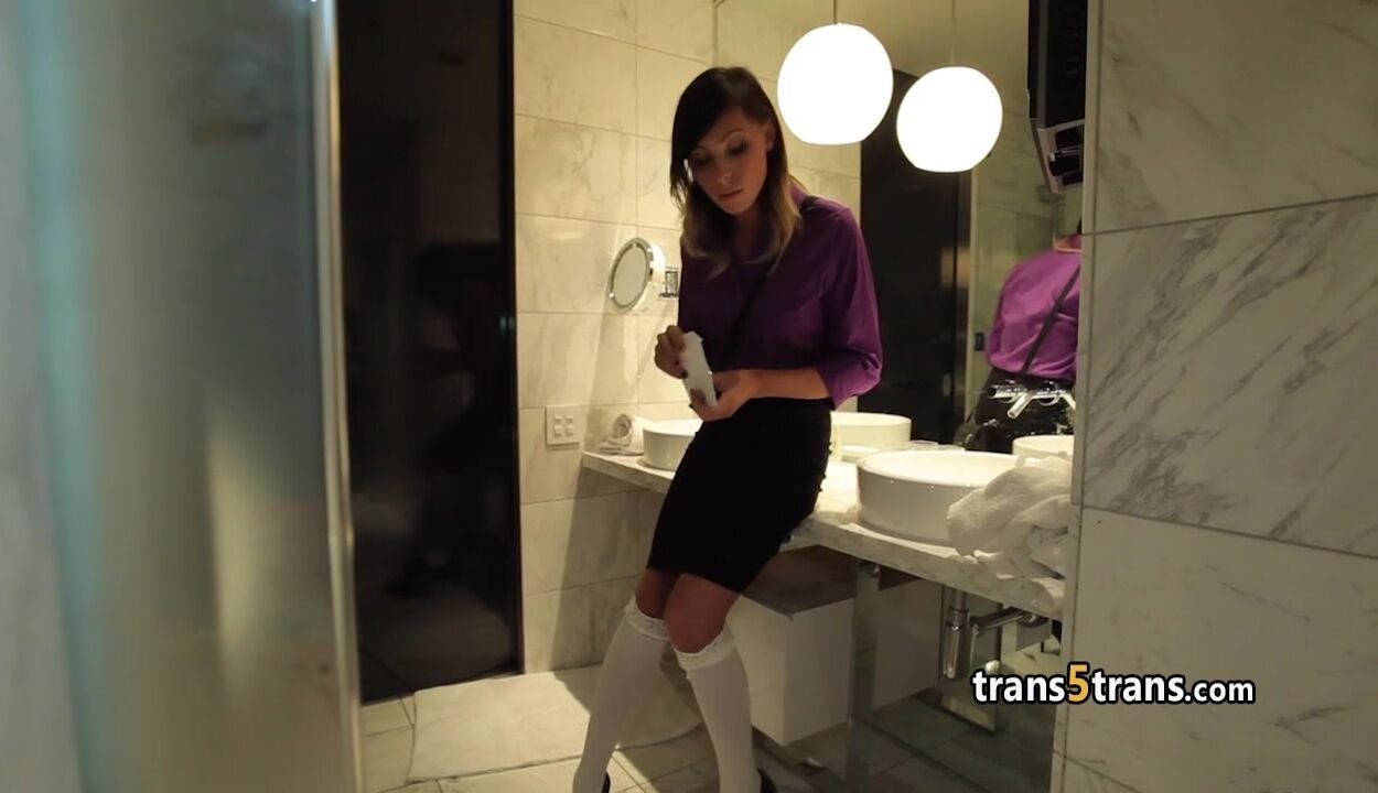 Description: Horny black stud sucked small cock of skinny shemale then got his shaft blowed deep and he fucked her tgirl tight ass hole until cumshot on her face