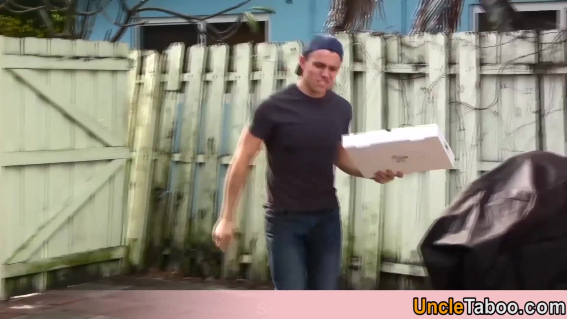 When muscle stepdaddy Ben Venido gets hungry while tanning on his backyard he orders a Meat lovers pizza which comes with the delivery guy included He is sucking his big cock then banging his ass in doggystyle
