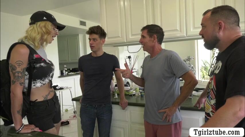 Description: Shemale hitch hiker takes a free ride from a random guy.After that,the guy brings her home and meets his family.Next is,they go to his room and she then throats his big cock passionately and lets him bareback her wet ass.