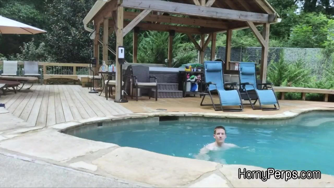 Jax is on duty and he catches this hot trespasser in the pool. It's time to teach him a lesson, first by getting his cock sucked then by a lot more!