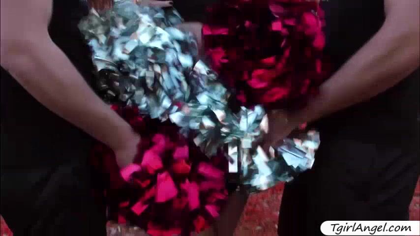 Stunning TS megastar Aubrey Kate puts on a sexy cheerleader outfit, practicing with cheer studs Dante Colle and Michael DelRay. They moved in the couch where she her teammates for an intense anal threeway. The horny tbabe sucks bigcoc while her ass gets nailed.