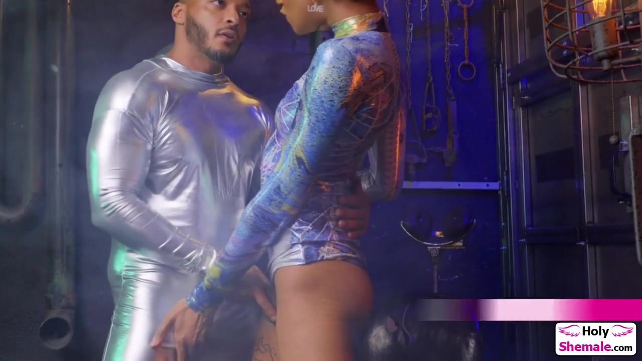 VR ebony shemale babe Cloudy Vi sucked and anal barebacked Video
