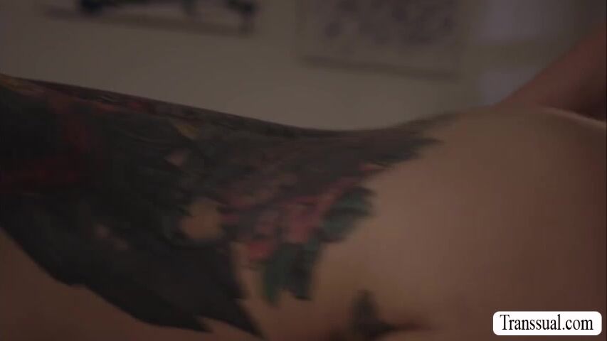 Tattooed babe gets her wet pussy fucked by stepbros TS girlfriend Video