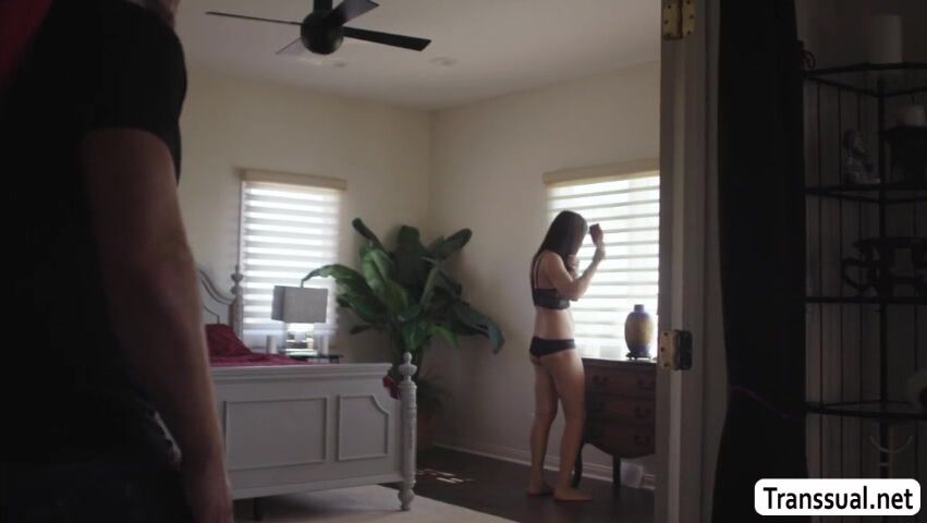 Stepson goes to the house of his trans stepmother to pick her up and go to the party.Instead of getting ready,she throats his big cock first passionately and in return,he lets his stepmom get naked and he then fucks her ass so hard.