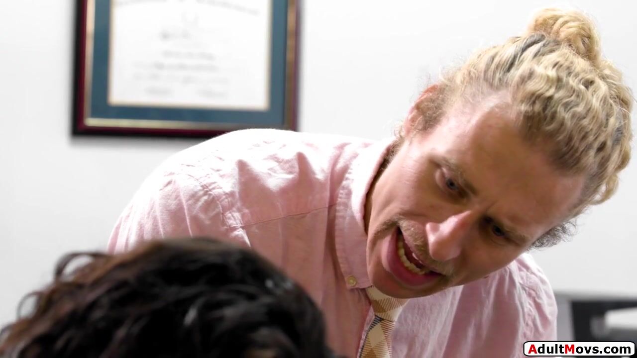 Description: Small tits principal gets caught masturbating by the librarian and orders him to lick and finger her pussy.The brunette rims him and is deepthroat facefucked by his big cock.He doggystyles the babe and she rides her shaved snatch on his dick