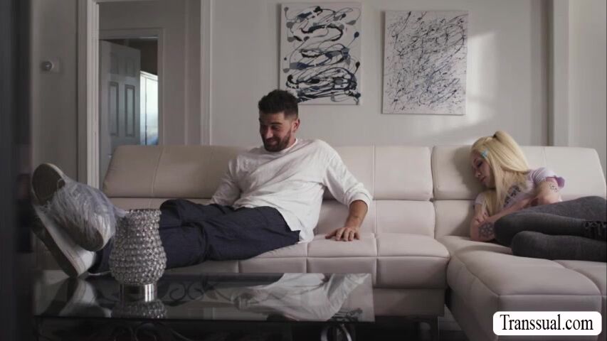Curvy Tbabe seduces the guy friend of her shemale stepsister while shes taking a nap.She starts sucking his big cock passionately and after that,they move into her room and she continue sucking his cock and lets him fuck her wet ass after.
