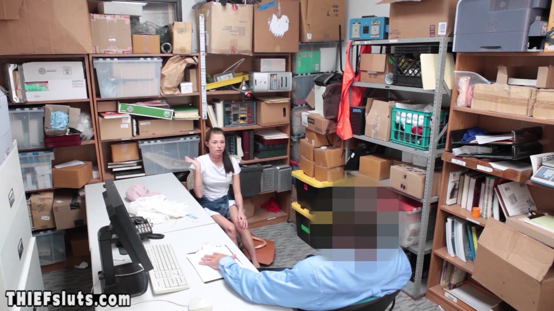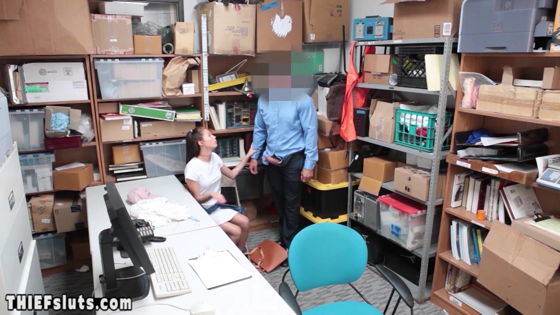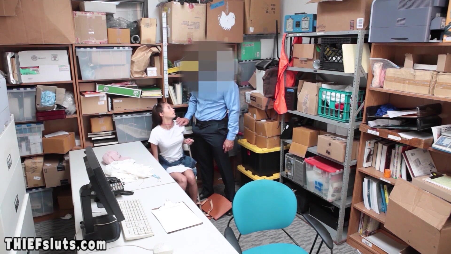 Petite brunette teen shoplifter with small tits tried to steal a necklace but she got caught by a dirty LP officer who ordered her to suck his big dick then he fucked her shaved pussy exchange her freedom