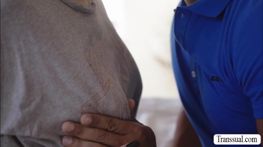 Black stepbro enters the room of his shemale stepsister while shes changing clothes.After that,they start kissing each other on the bed and he lets her throat his big black cock passionately.In return,he fucks her wet tight ass so deep and hard.
