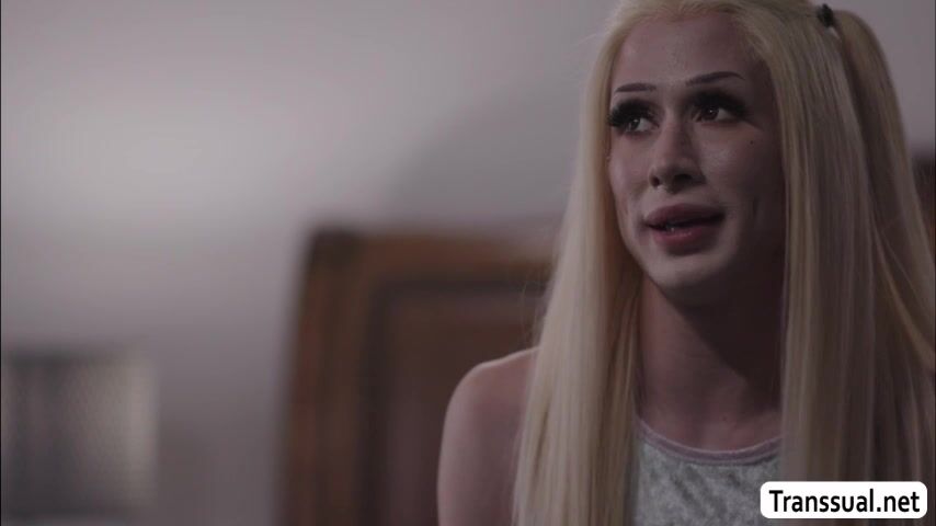 Smalltits shemale helps her black stepdad clean the house and her room.After that,they start kissing each other and she then throats his big black cock passionately.In return,she lets him fuck her wet ass so deep and hard.