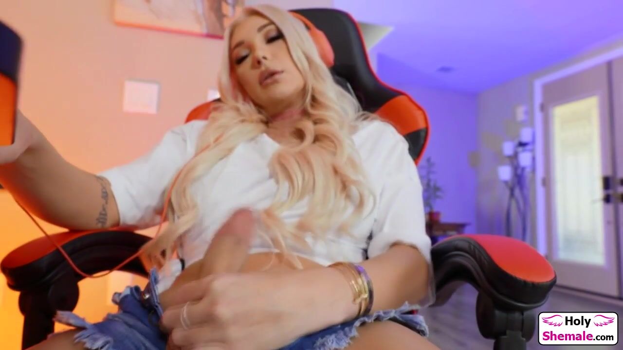 Description: Busty gamer tgirl Aubrey Kate jerks off her tranny dick.A guy shows up and lets the big tits shemale suck his cock.He rims the trans big ass and barebacks her.The blonde ts gets a blowjob.All horny the hot transsexual lady is anal reamed