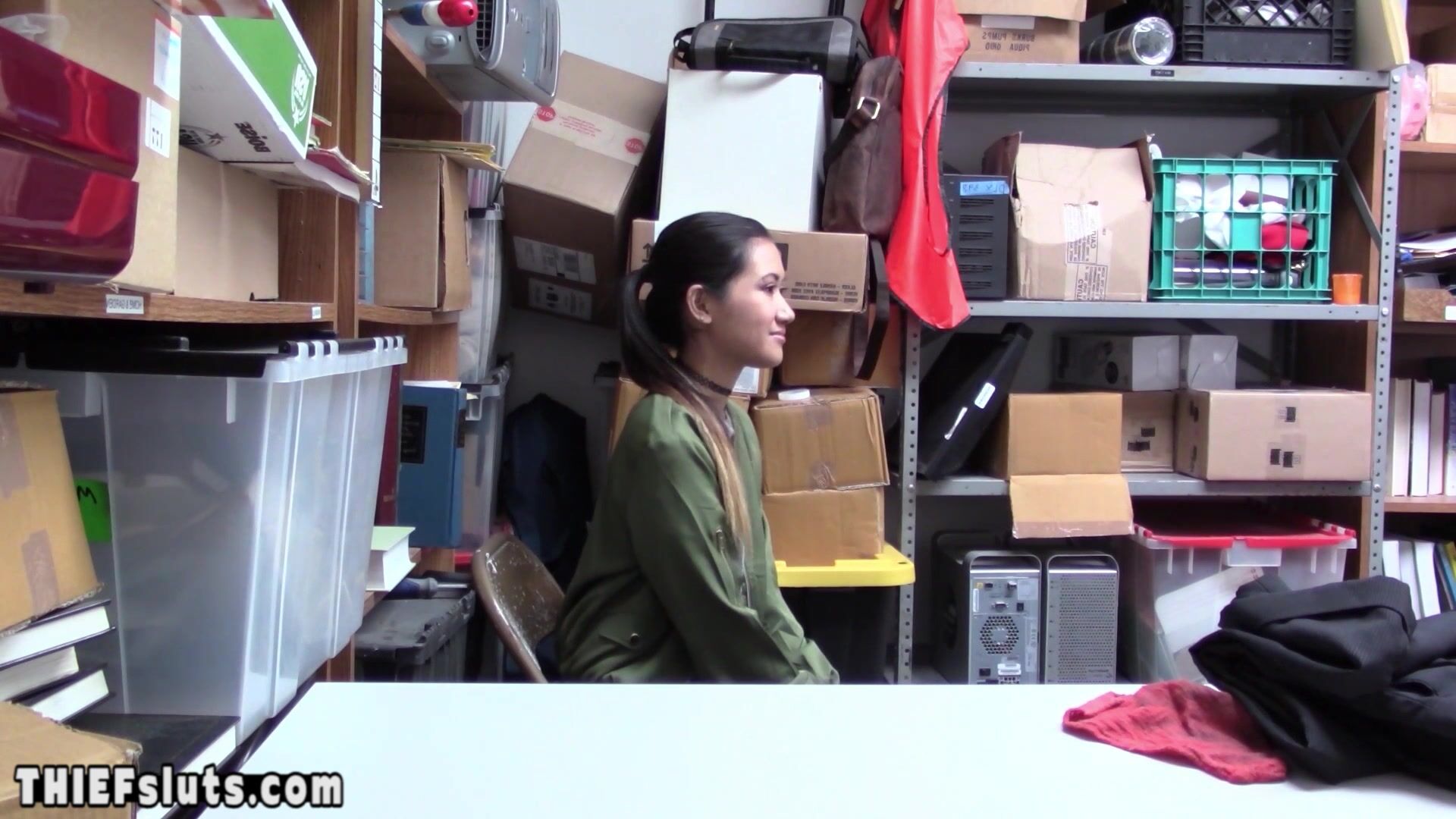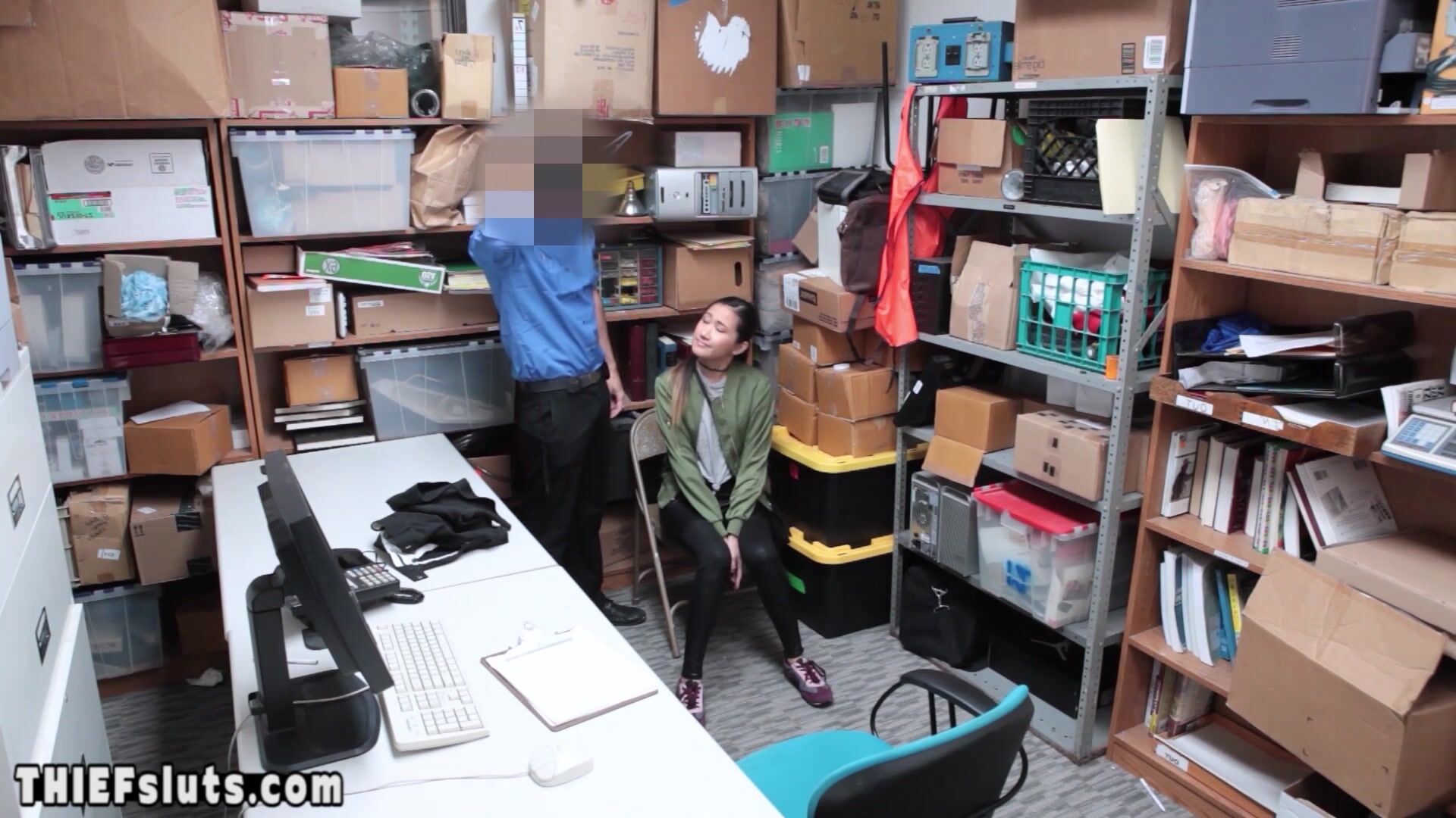 Petite brunette asian teen shoplifter Jade Noir with small tits got caught by a dirty LP officer who wanted to feel her exotic pussy so he fucked her and ordered her to suck his big cock exchange her freedom