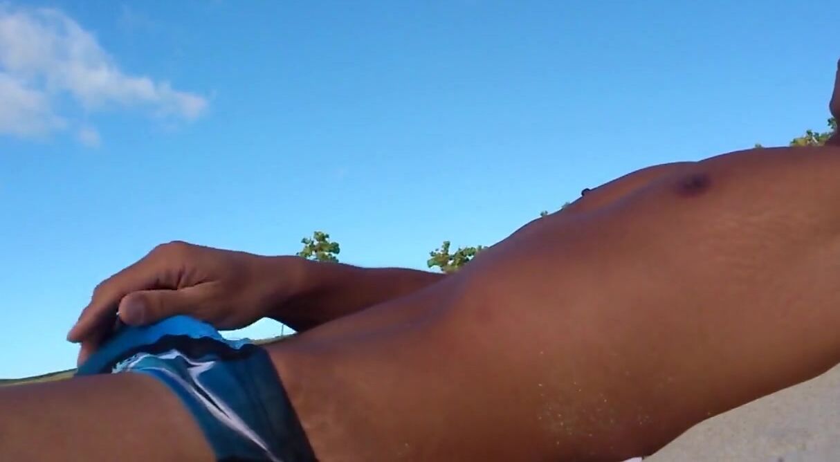 asian twink jerks off on beach Video