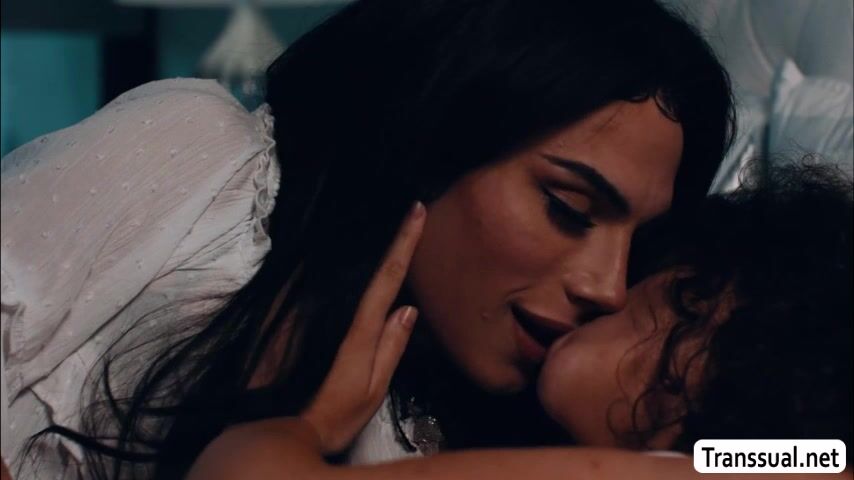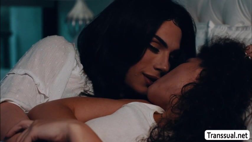 Shemale stepmom and her curly stepdaughter are on the bed cuddling to each other.After that,they get horny and start kissing each other.Next is,she goes down and she then licks the pussy of her stepdaughter before fucking it so hard.