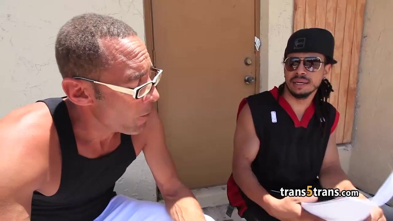 Skinny tgirl take two giant cocks Video
