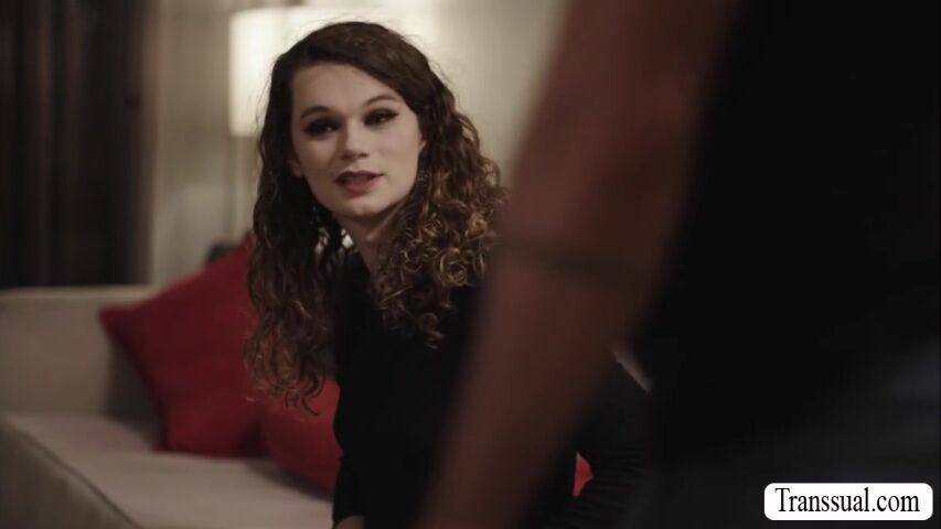 Description: Curly haired shemale meets her new stepdad in their house.After that,she down her knees and she then throats his big cock passionately.In return,her new stepdad fucks her wet ass so deep and hard.