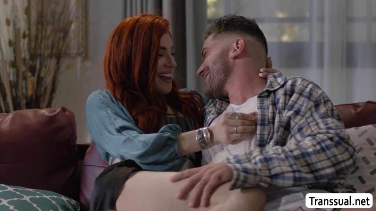 Description: Slut shemale brings her new guy in their house while her husband is working.After that,they start kissng each other on the couch and she then throats his big cock passionately.In return,the guy fucks her wet ass so deep and hard.