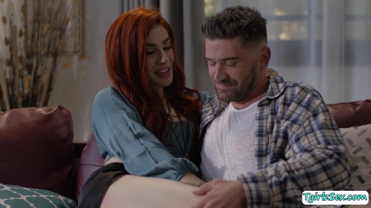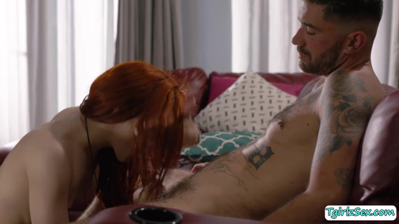 Description: Slim ts beauty Ariel Demure picks up a random man ont he street while her husband is away. She fills in her lust by sucking his cock tenderly before bounces on it on the couch.