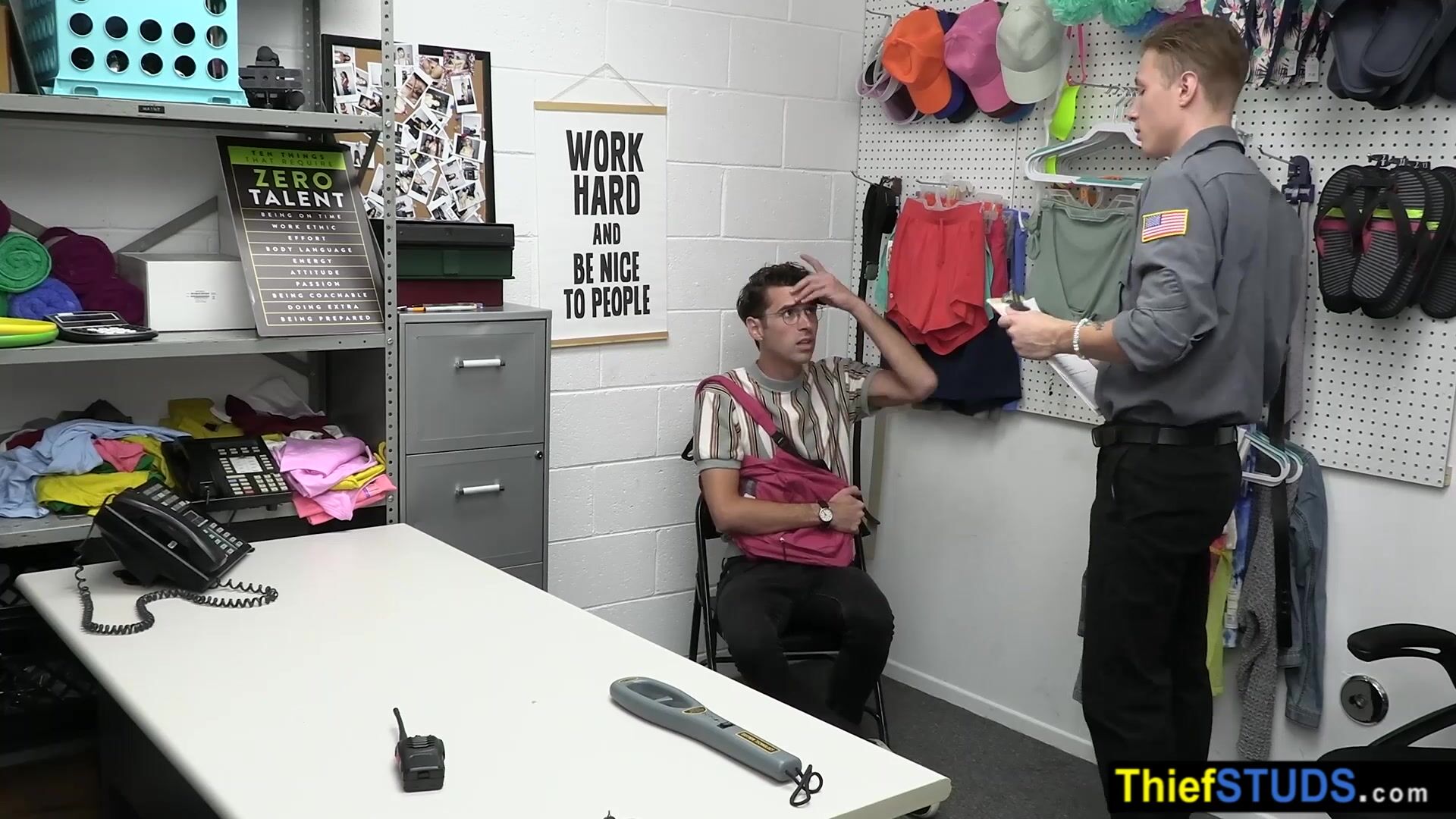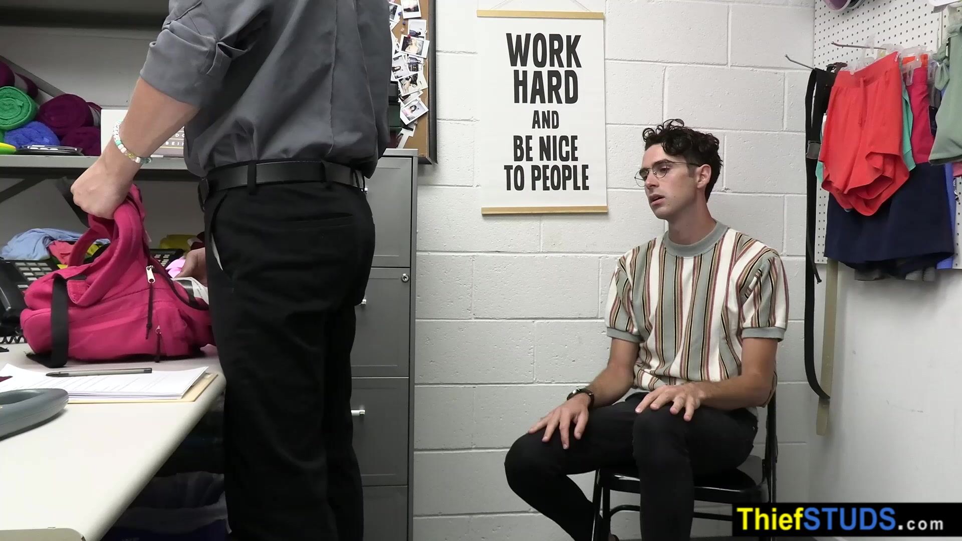 Nerd teen thief Cole Church in glasses tried to steal a comic book but he got caught by a vigilant LP officer Cole Church who strip seached him He ordered him to suck his big cock then he fucked him bareback to teach him the rules