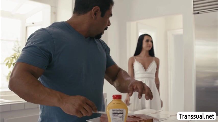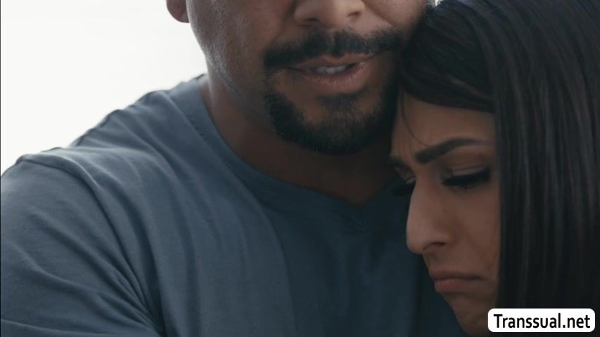 Fat stepdad comforts his shemale stepdaughter becauses shes broken hearted.They start kissing each other and he lets her throat his big cock passionately.In return,he licks her ass first and fucks it so deep and hard.