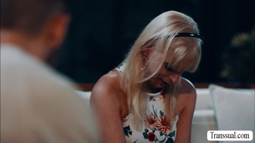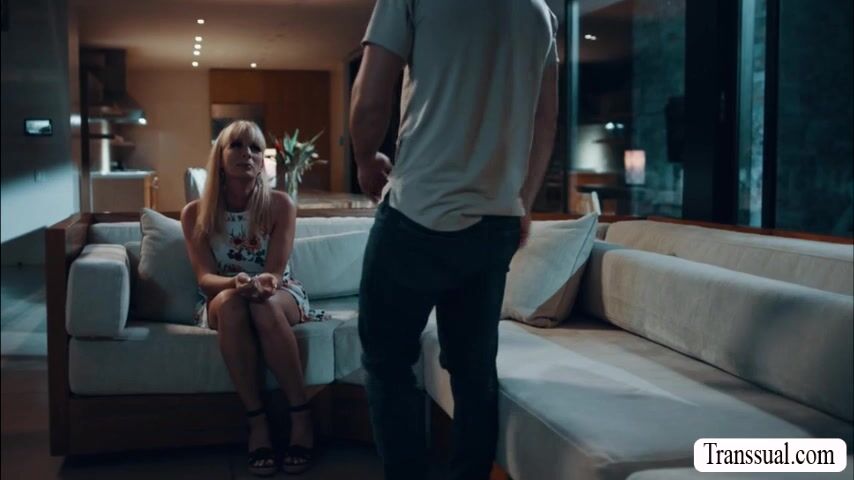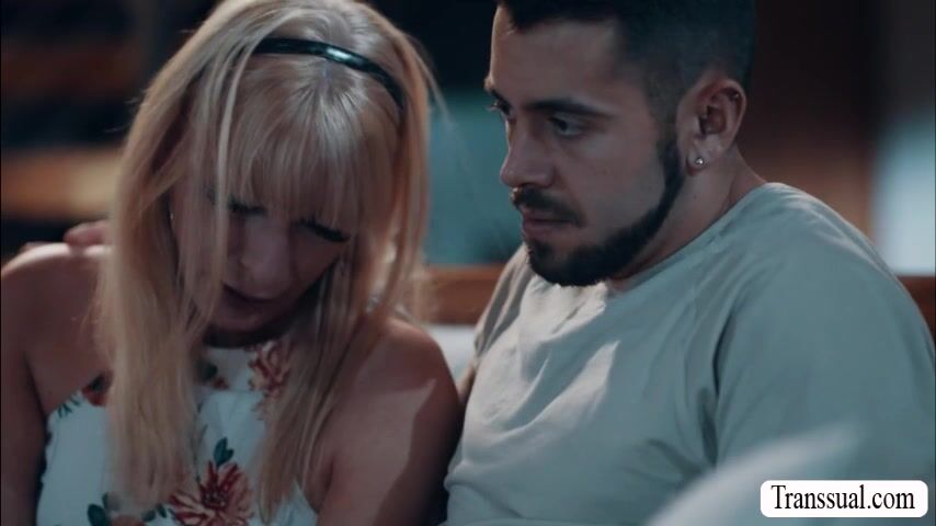 Busty shemale stepmom is crying on the couch because she misplaced her wedding ring.But with the help of her shy stepson they found it and they start kissing each other.Next is,she throats his big cock passionately and lets him fuck tight ass so hard