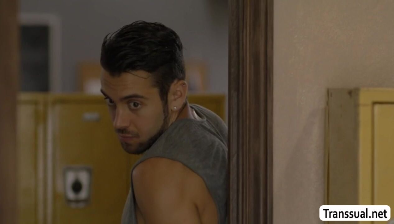 Sexy ebony TS caught a guy watching her while shes naked and taking a bath in the gym.Instead of calling cops,she lets him in and she then throats his big cock passionately.In return,the guy fucks her wet ass so deep and hard.