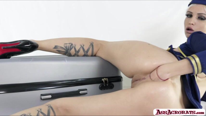 Hot lesbian babe KsuColt looks seductive in sexy lingerie while fisting her tight asshole for the camera and then she uses huge blue dildo to gape her ass.