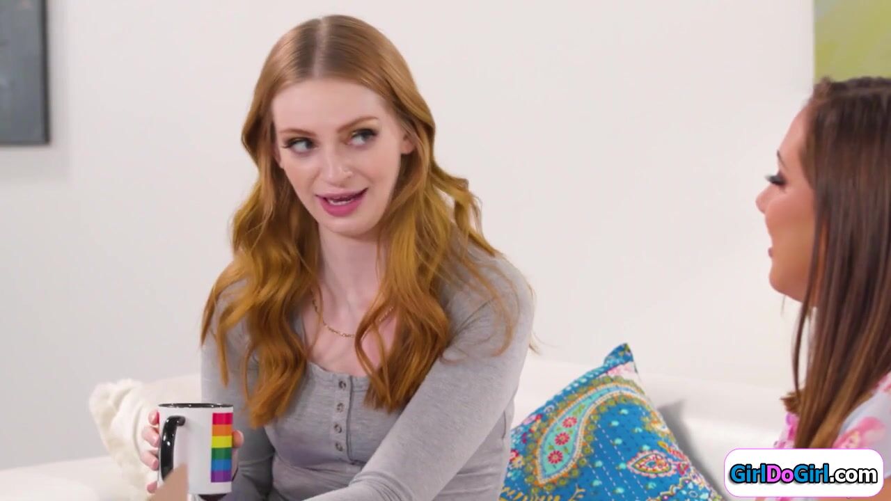 Redhead delivers a package to busty neighbor.The petite latina is embarrassed when she pulls out a strapon.The ginger is turned on and the lesbian ladies kiss.They suck tits and the small tits redhead is strapon fucked.She licks pussy and facesits