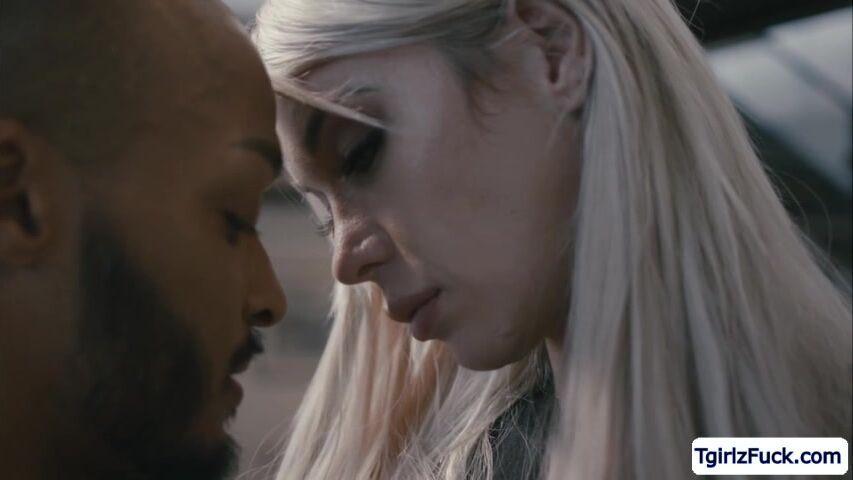 Busty blonde tranny babe Aubrey Kate pay a visit, alone, to her sexy black neighbor Dillon Diaz. She wants to taste her new neighbors cock and sucks it hungrily before her eager asshole takes it in the couch.
