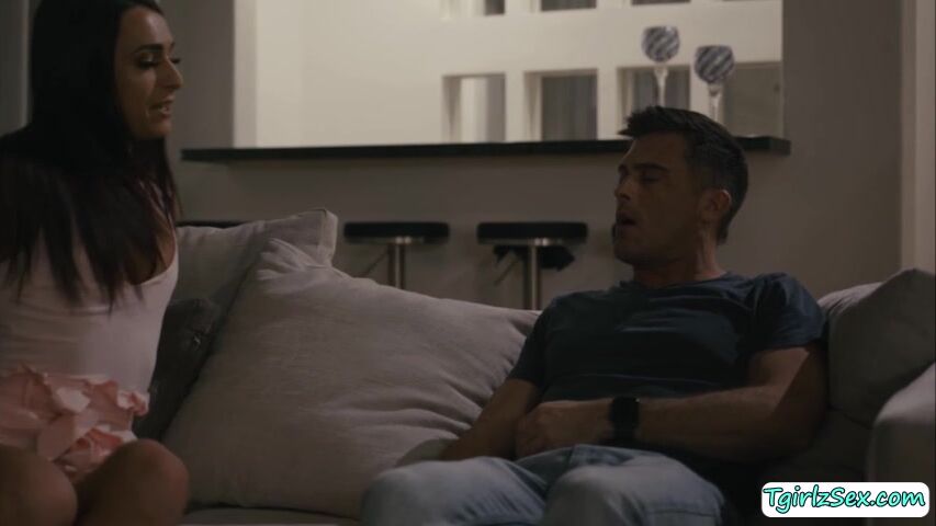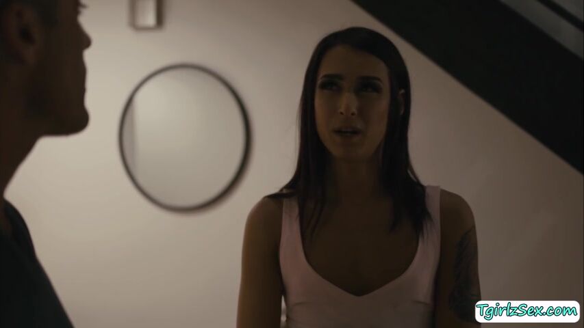 Brunette tattoed tranny Khloe Kay sucks the cock of her hunk friend Video